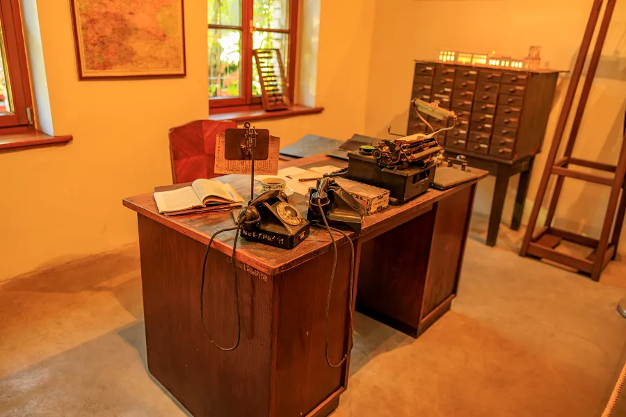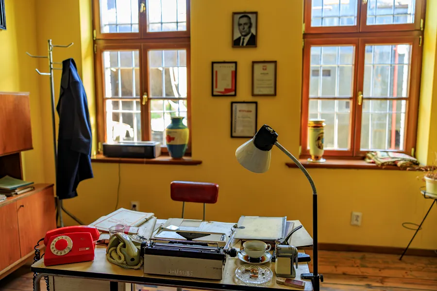 W jednym z nich szczególnie łatwo zatrzymać się na dłużej. Na ścianie wisi portret Edwarda Gierka, na biurku stoją stare telefony, obok ktoś zostawił niedopitą kawę, a w popielniczce wciąż leżą niedopałki. Te drobiazgi budują klimat wystawy. Wszystko wygląda tak naturalnie, że przez chwilę można mieć wrażenie, jakby czas się tu zatrzymał.
