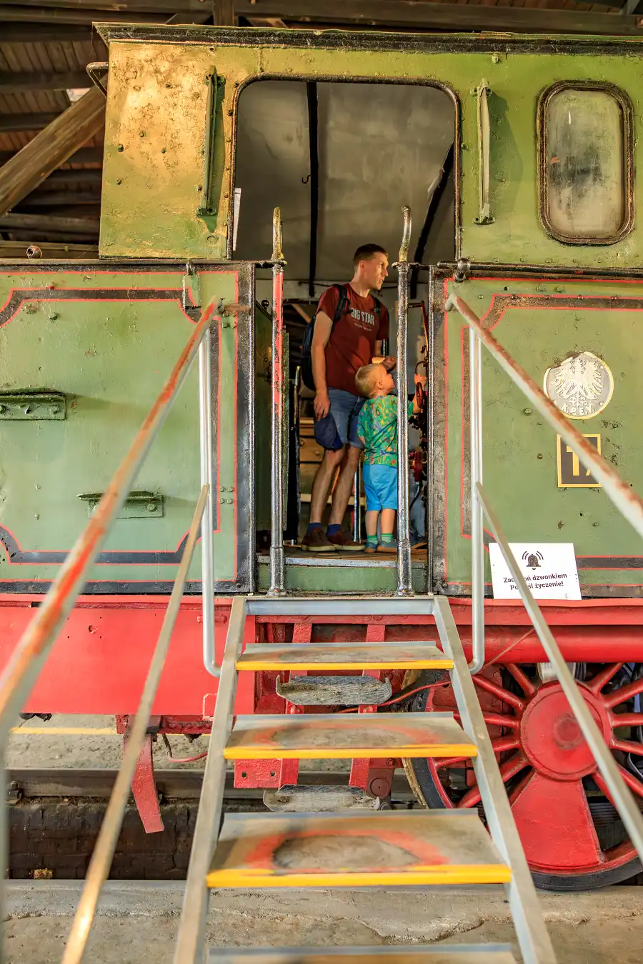 Ogromne wrażenie robi już sama możliwość wejścia do prawdziwej lokomotywy. To doświadczenie, które pozwala na chwilę przenieść się w czasie i zobaczyć kolej „od środka”. Surowe wnętrza, detale techniczne i zapach metalu tworzą autentyczną atmosferę, dzięki której łatwo wyobrazić sobie codzienność pracy maszynisty. To nie jest tylko oglądanie, to realne doświadczenie historii.
